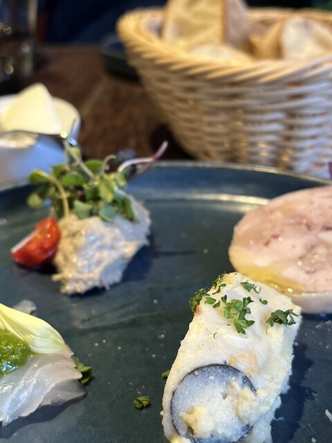 前菜の盛り合わせから、パン、スープ、メインまで美味しくいただけました。とても贅沢な時間。スープはブロッコリーのポタージュ、とても濃厚です。豚ロースのステーキは肉の旨味がなんとも言えない。