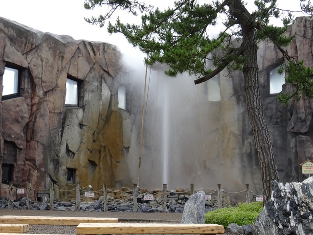 温まるんですねぇ。すると目の前で間歇泉がいきなり吹き上がります。
