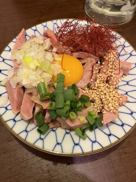 低温調理のタンをユッケ仕立てで。