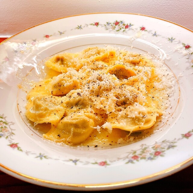 トルテッリというパスタは、ここは餃子のような形状です
