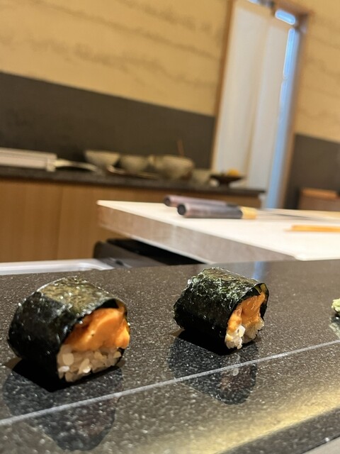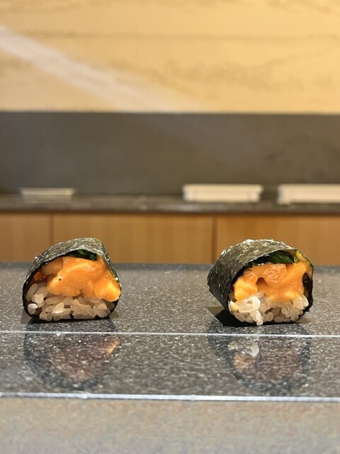 ウニの巻物は、ウニがシャリより多いんではないかというようなウニの量で、口に含むとウニしか感じられないくらい!あまーい!!