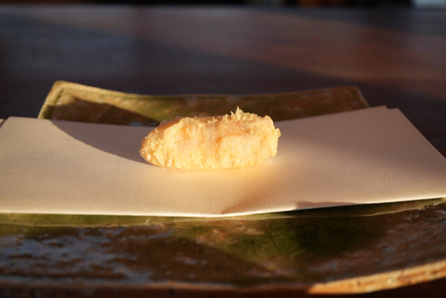 そして何より、くすのき最大の魅力である揚げの技術。ここでの天麩羅は、油を食べさせる料理じゃない。油は主張しない。素材に正確に、そして一気に熱を入れるための手段でしかない。その高温でしか引き出せない甘み、香り、旨味が、最も美しい瞬間で立ち上がる。その精度が、船の上という不安定な環境でも一切揺らがない。この事実こそが、くすのきの凄みである。