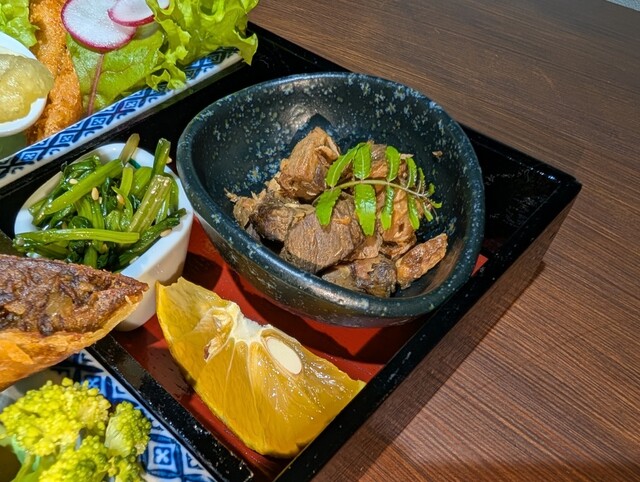 マグロの煮付け、木の芽を加えて食べると濃厚さのなかに爽やかさが突き抜ける感覚を味わえます。