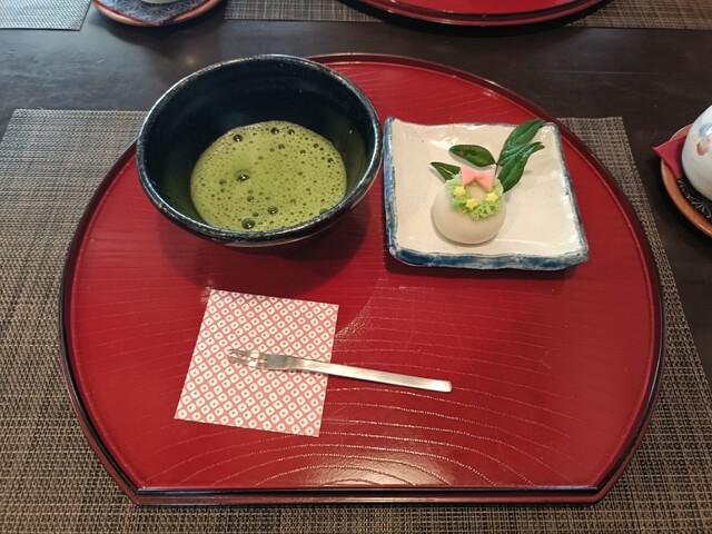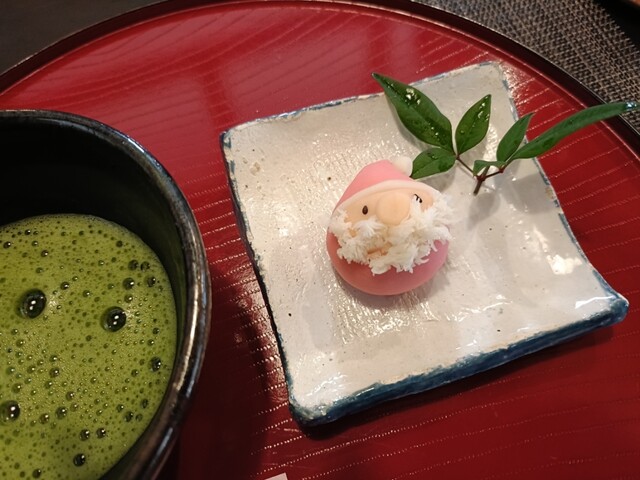 炊き込みご飯は一人ずつ手作りの土鍋で炊き上げられ、湯気とともに立ちのぼる香りが格別です。食後には抹茶と練切が供され、サンタやトナカイ、クリスマスリースなど、ひとつひとつ違う顔の可愛らしい細工に心が和みました。
