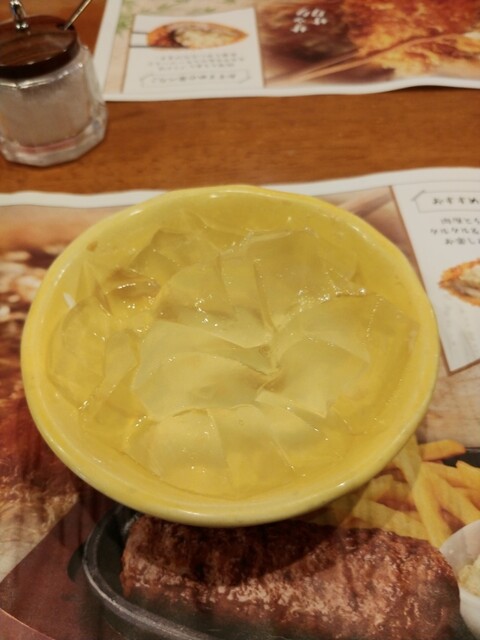 岩塩とお店のソースをハンバーグの半々に使い食べました。