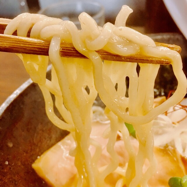 麺は中太ちぢれ麺でよくスープを絡めて来ます