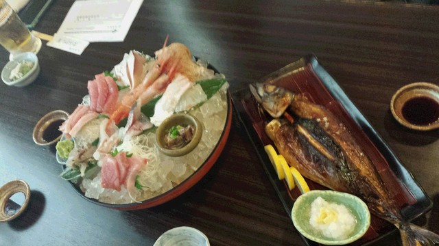 「せっかくここまで来たからお刺身くらい食べたいよね」ということで、新幹線まで約1時間ですが、営業していたここまるさん屋さんへ。