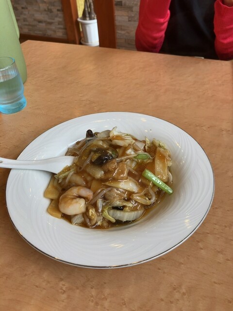 にんにくの茎と豚肉の炒め物。うん。美味しい。夢中になれる。具の種類も豊富。たけのこも有り。おかずにも良き。コレは当たりだわ。後でご飯にぶっかけて食べよう。