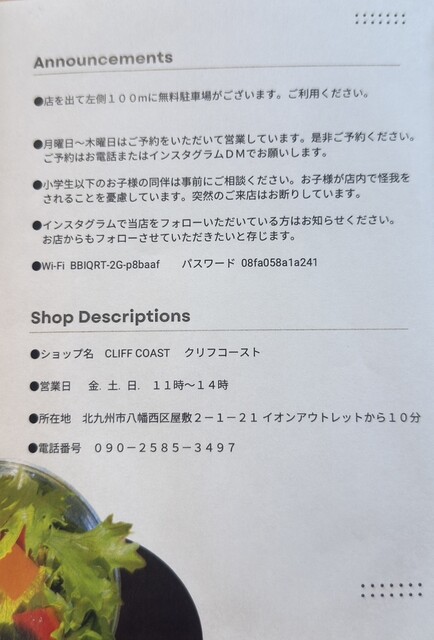 黒崎駅の北側エリアって殆ど立ち入った事がない。故に不慣れな道を進み辿り着くとちゃんと存在してた当店Cafe Cliff Coast。