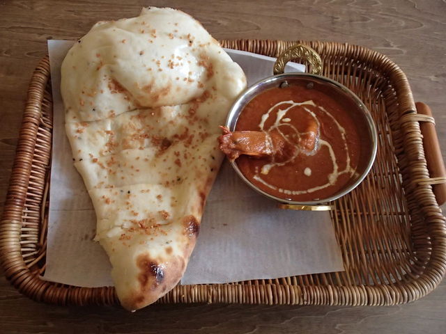 ナンは、生地に厚みがあり、しっかりとしたタイプ。