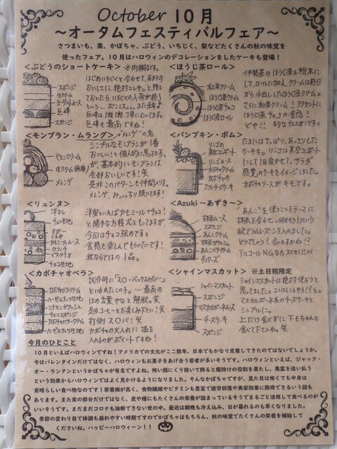 フェアのケーキの詳細を記載した用紙が置かれるようになった事も、各ケーキのこだわりのポイントなどが分かりやすくなっていいと思います。