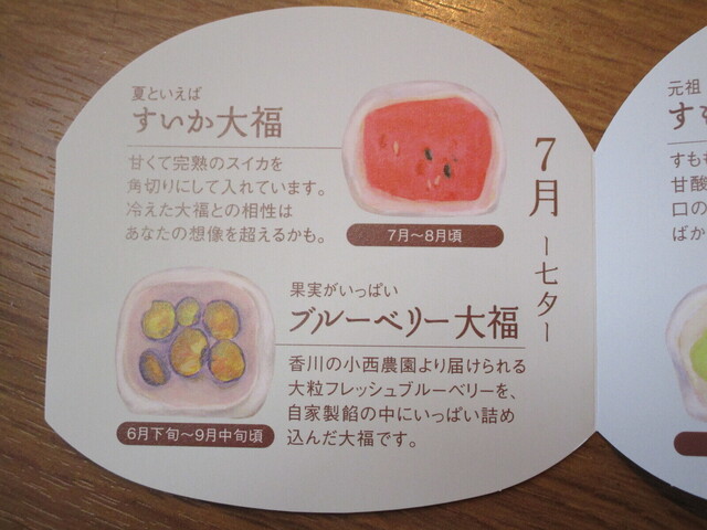 5月~7月初旬までのアップルマンゴー大福は、残念ながらやや時期が遅かったのか、なかったです。