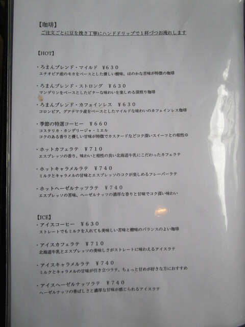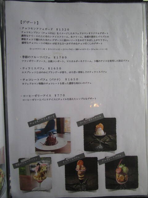 ロマン亭系列で他にもスイーツビュッフェの開催店舗はありますが、カフェドロマンならではの魅力はメニュー表のカフェメニューだと思いますし、こちらを中心にオーダー。