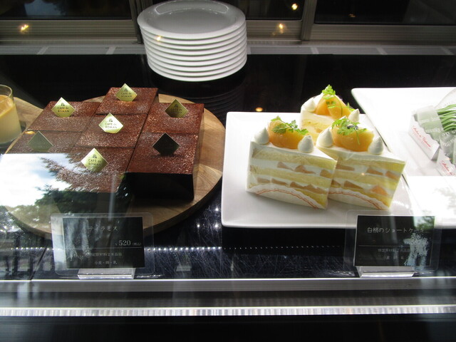 ショーケースのケーキはテーブルに用意された皿を持ってショーケース前でオーダー形式で、1度に2個まで。