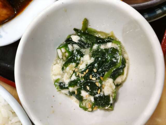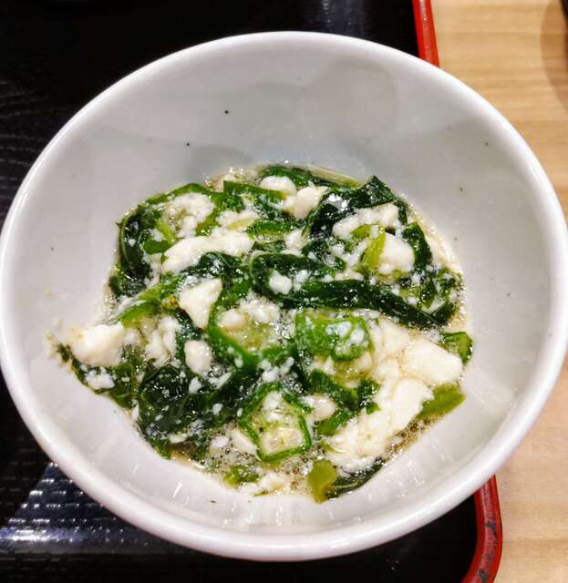・小鉢:豆腐と青菜などの和え物でした。 さっぱりしていて、ちょうど良い箸休めと言う感じでした。