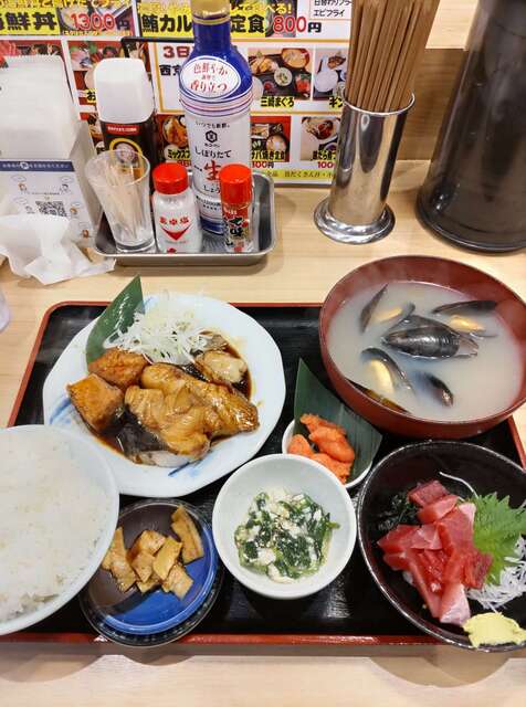 ● 銀だら煮つけ定食:銀だらの煮付け・小鉢・漬物・ご飯・あら汁の組み合わせ。