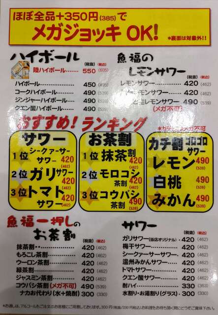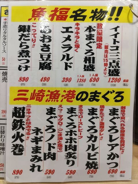 今日は魚の煮付けが食べたいなぁ。 お肉も食べたいと言う事で、コスパ抜群の「魚福」さんに決定!