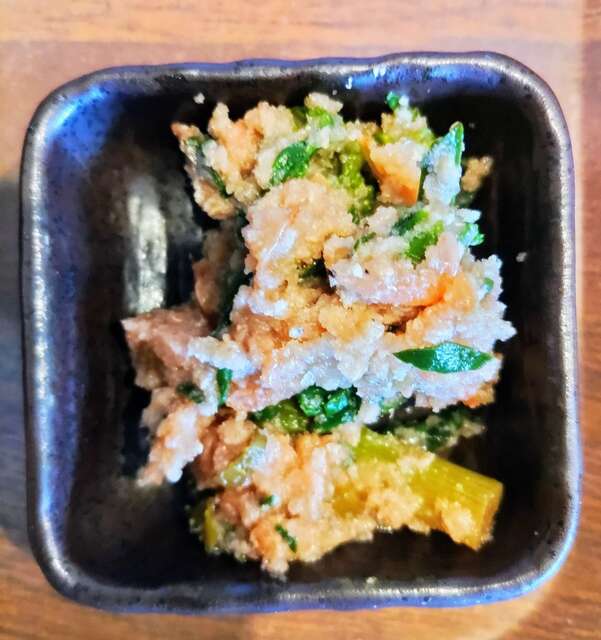 ● 小鉢:サクラエビ・おから・菜の花の和え物。