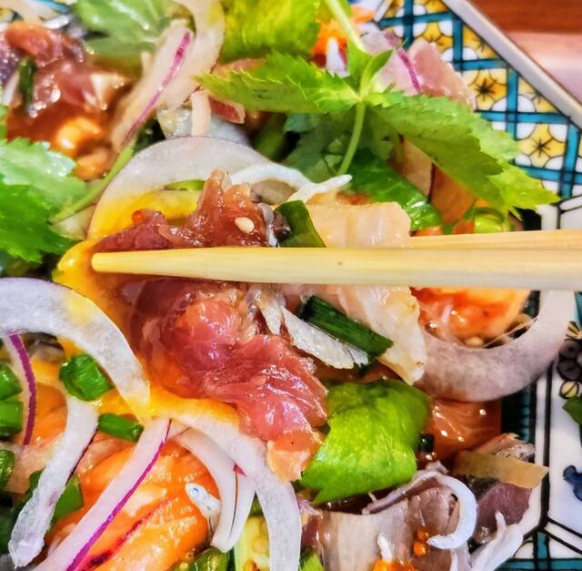 ● 海鮮丼:マグロ・ネギトロ・とびっこ・ブリ・カツオの組み合わせ。