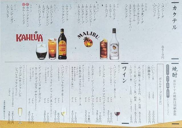 ドリンクメニュ-(ハイボ-ル・ビ-ルなど)