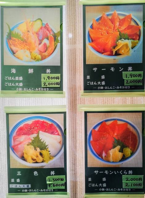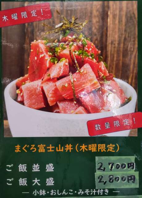 ● 中トロ漬丼:中トロ漬丼・小鉢・漬物・味噌汁の組み合わせ。