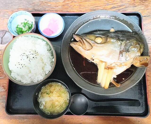 ぶりかま煮付け定食・非常に美味しく、豪快なぶりかまの煮付け。 大きくて、ビックリしました。