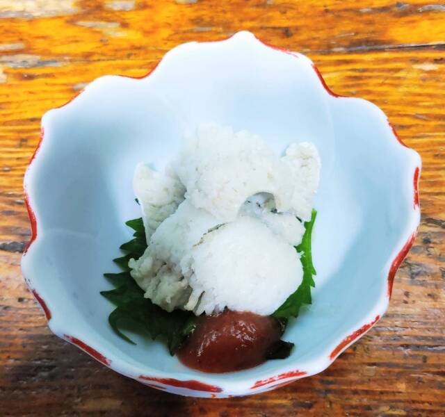 ● 本日の刺身:ハモの梅肉和えでした。 想像通りの味だと思いますが、とても美味しかったです。