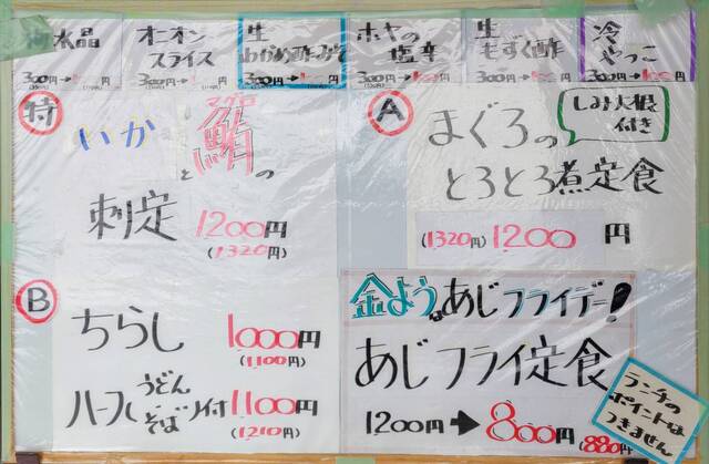 金曜日は「あじフライデ-」と言う事で、あじフライ定食がお得に食べられるみたい。