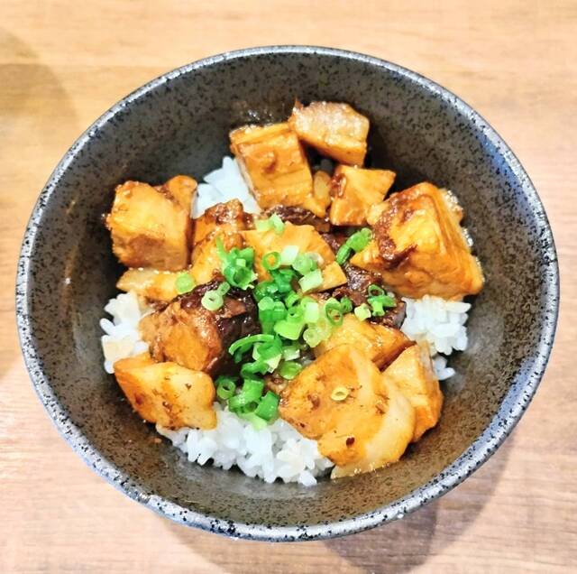 ● チャ-シュ-ごはん:チョットだけ濃い目の醤油系のタレに、トロトロのチャ-シュ-が沢山乗っていて、ご飯に合いとても美味しかったです。