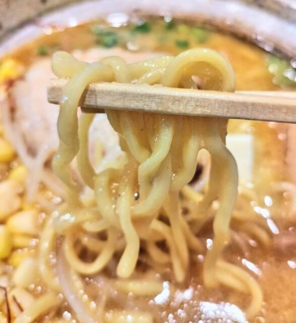 ・麺:中太縮れ麺です。 ノーマルでちょうど良い茹で加減。 スープによく合い、とても美味しかったです。