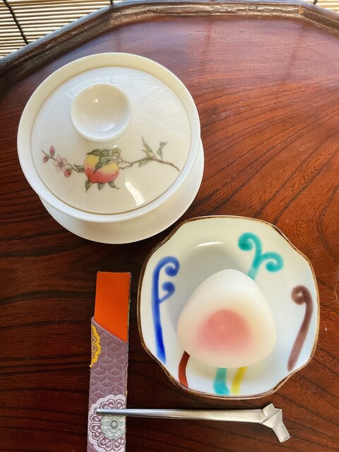 それも白い子猫の耳だとわかって、慌てて蓋碗と菓子皿を変えました。