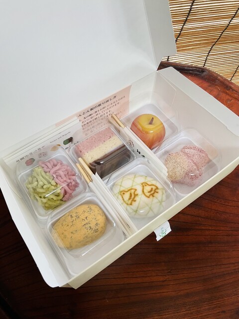 睦月上旬の上生菓子3種と干支に因む菓子2種、歌会始のお題「窓」に因る菓子1種を購入。