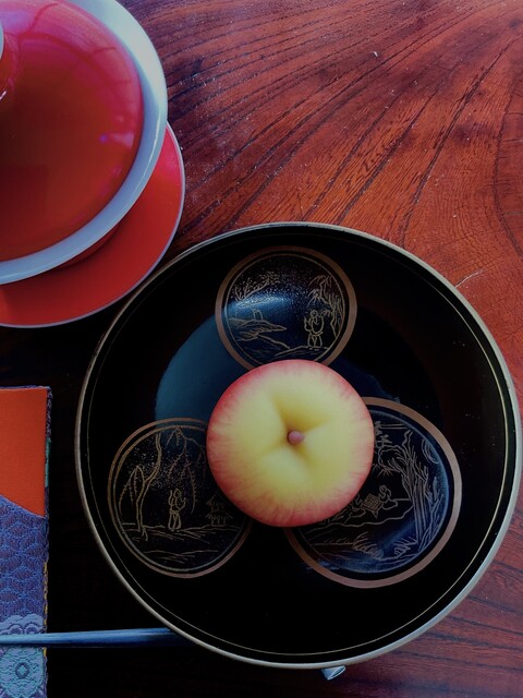 「空の旅」より、ちょいと紅の強い羊羹を果肉に見立て