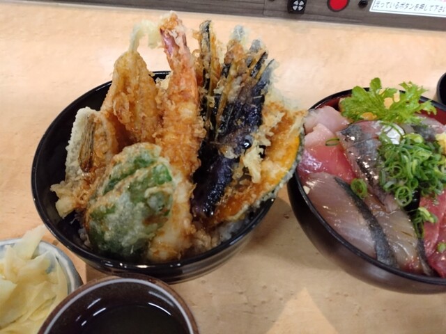 だが、届いてみて分かったのだが、五色丼は新鮮そのもの、本ではないがマグロも入っている。これで1100円の値段設定は見たことがない。まだ箸を付けた程度で今度は天丼が来る。こちらの880円は値段相応か。それでも合わせて2000円ちょっとで食べられるレベルではない。