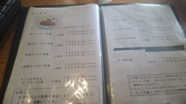 注文は特大ロースかつ定食(1705円)の大盛り(55円)。ちょうど良い感じの量で、どちらかが余ること無く頂けた。かつは分厚いと言うより縦が長い。ご飯のせいか脂身がやたらと甘く感じ、肉は肉で柔らかく歯応えを感じる程度の柔らかさ。味噌汁ではなくけんちん汁というところも、ボリューム感があり、ソースの味の濃さに負けていない。本来ならソースの付いたかつをご飯にバウンドさせるのだが、あまりの勿体無さに最後までご飯の白さを貫いた。何度も味わう「本来のご飯の味」に、今まで忘れていた日本人の魂が思い起こされるとともに「今まで食べていたものはなんだったんだ?」と反省したりもした。いやいや、もっと気軽に、単純に食べに来れば良い。だだ美味しいというのもあれば、あれ?と感じることもあるのが、それぞれの感想なのだから。