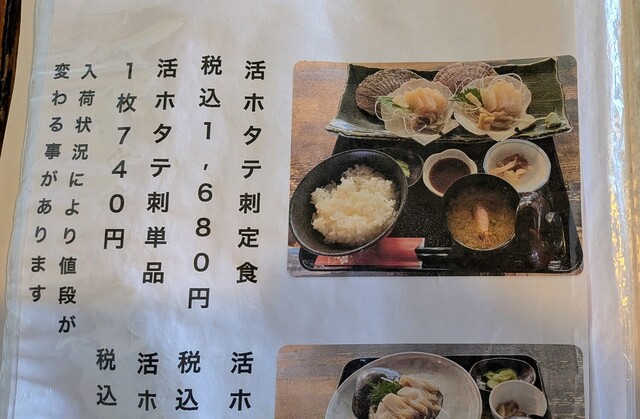 活ホタテ刺定食 1680円