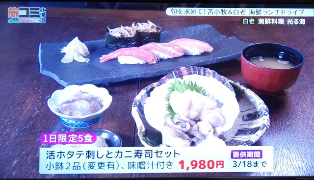 じゃらん秋鮭定食はメニューから消えていたので「ホッキ刺し定食」を注文