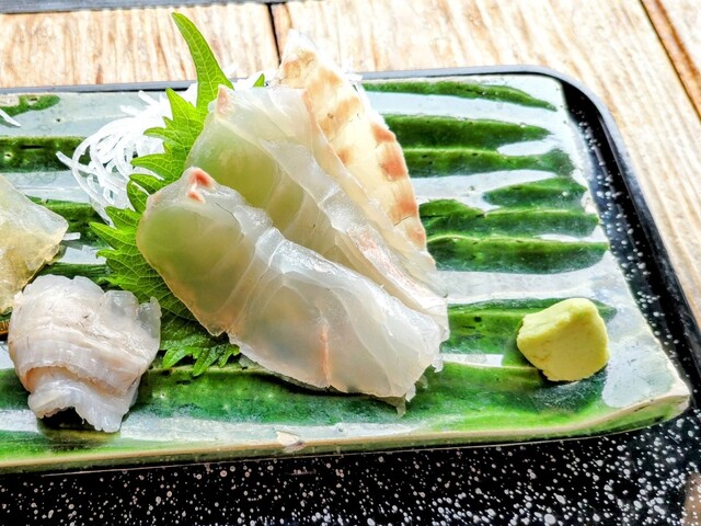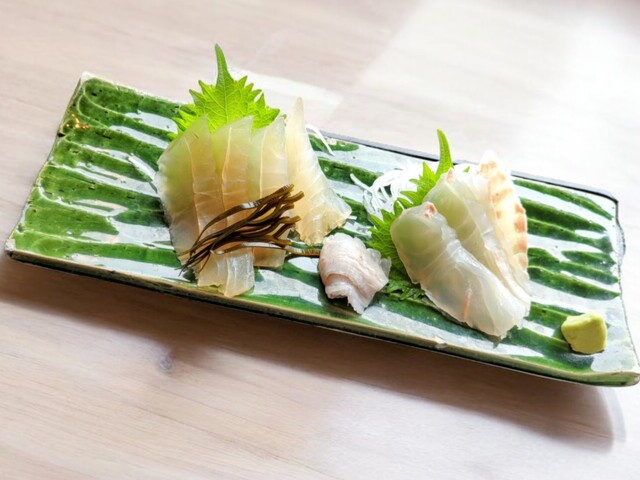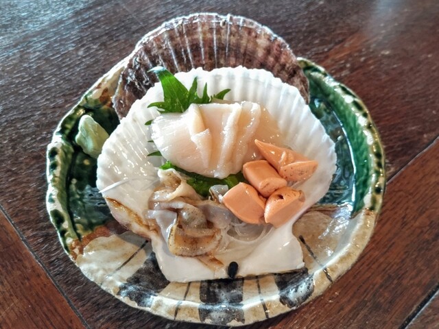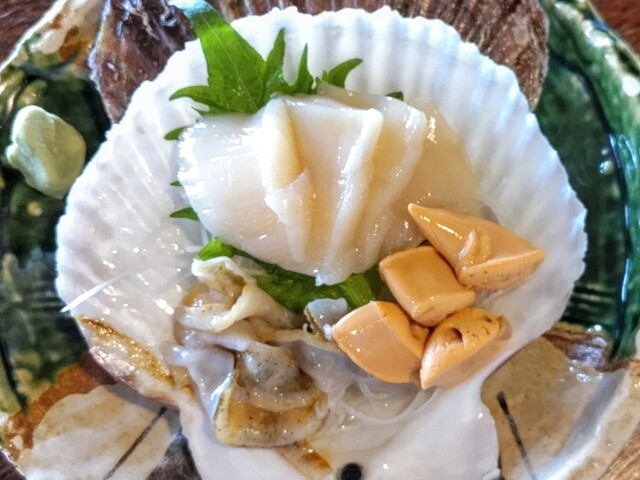 ツブとホタテの刺身をシェアする事にしました