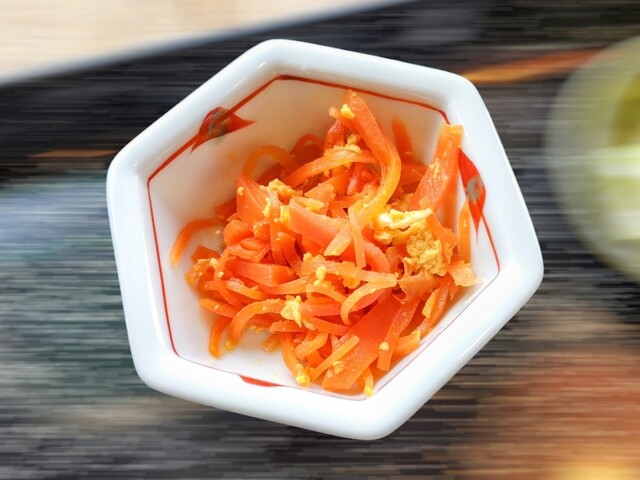 小皿には、蟹風味の鮭の唐揚げ...これメチャうま!単品メニューにして欲しいくらい