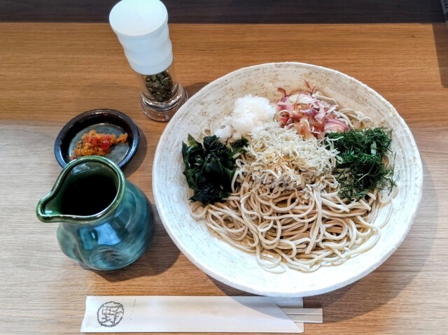 しらすワカメおろしミョウガ紫蘇...冷やし五目蕎麦だわ チガウカ?