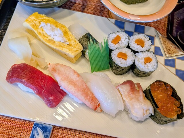 玉子→赤身→トロ、ガリを挟んで→甘海老...