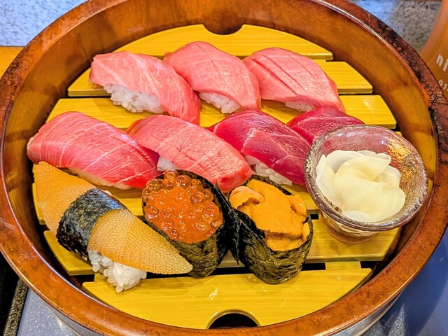 北方の雲丹、ツブ、こはだ、トロ、イカ