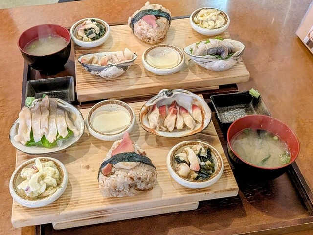 刺身 焼 酢の物 サラダ おにぎり 全部ホッキ