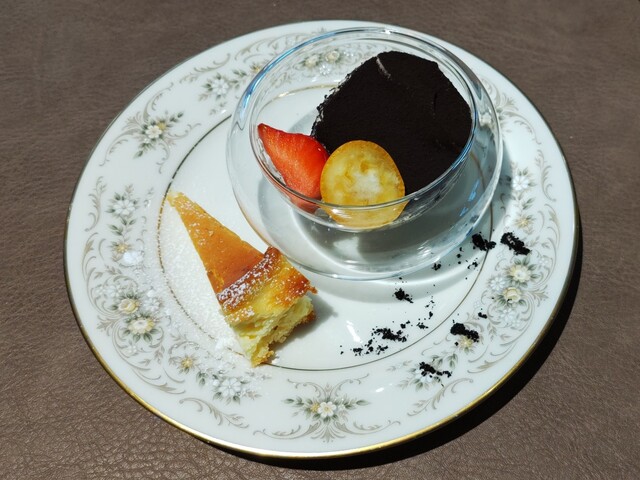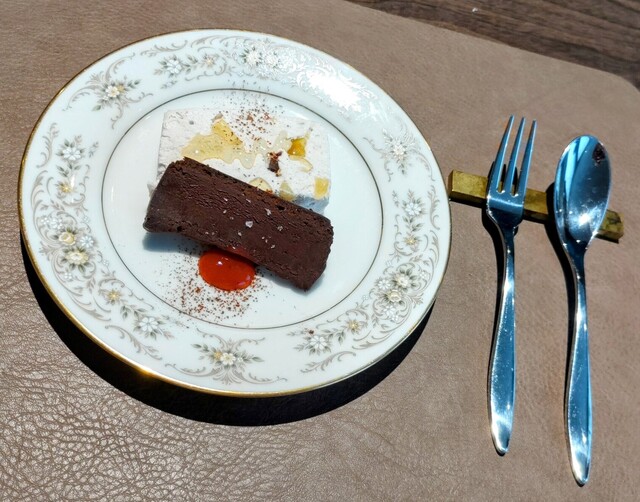 •デザートは マンダリンのパンナコッタ チョコとプルーン添え