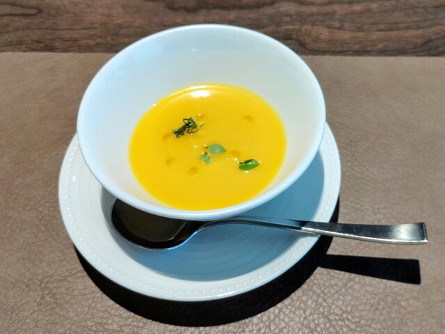 百合根のスープ(ふきのとう入り)でスタート マァオイシイ♡