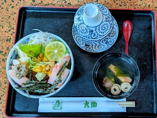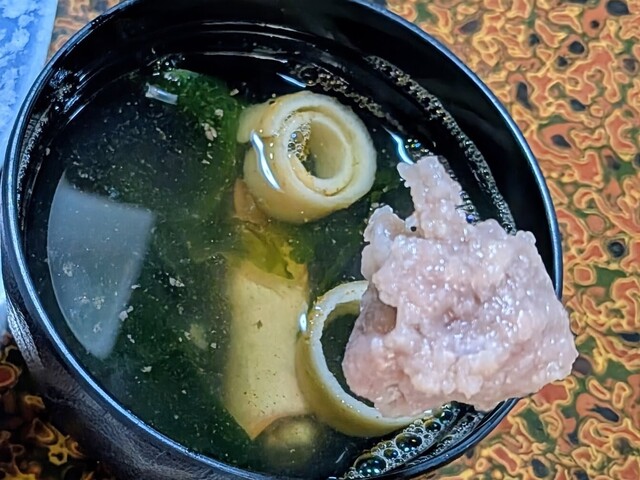 海苔を散らし、柚子を搾り、山葵を溶かして回しかける