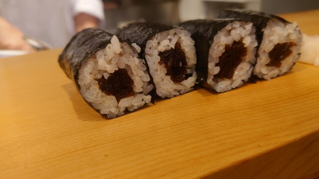 有楽町方面からコリドー通りを通り新橋方面へ。路地裏のビル一階にひっそりと佇む江戸前鮨の名店。カウンター6席の店内を大将がひとりで切り盛り。鮨、酒、人、全てに潔さが光る良いお店でした。また、伺わせて頂きたいと思います。