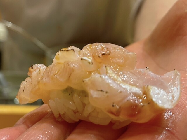 個人的にここのこはだの握りはシャリとネタのバランスが最高で、超凝縮された旨味が口の中で爆発!ぶっ飛ぶ美味しさで大好きです。