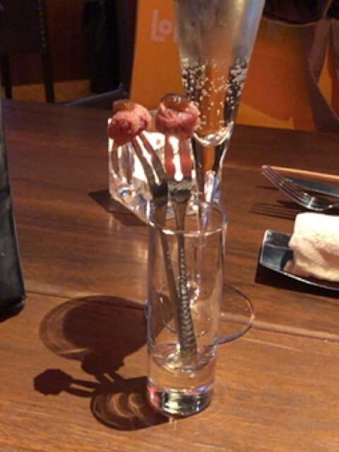 かなり待って戻ってきた、しばらくして、スパークリングが運ばれる。