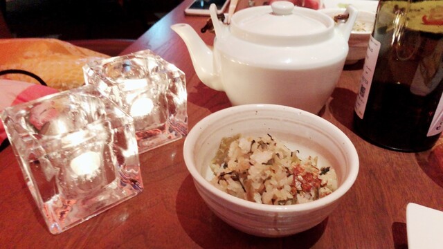 最後は高菜のガーリックライス、お好みでダシを入れて下さいと